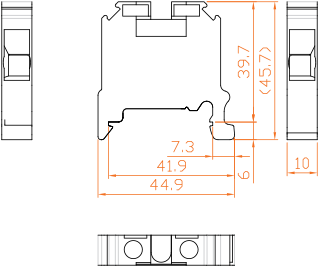 در ترمینال ریلی پیچی سایز 10 رعد مدل RTP10 سیمگیری بهصورت پیچی بوده که امکان اتصال سیم افشان تا سایز 10 و سیم مفتولی تا سایز 16 وجود دارد. حداکثر جریان عبوری مجاز از ترمینال 57 آمپر است. دیگر ویژگیهای ترمینال ریلی رعد سایز 10: